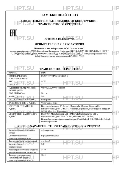 | Коммерческое наименование | COUNTRYMAN COOPER S |