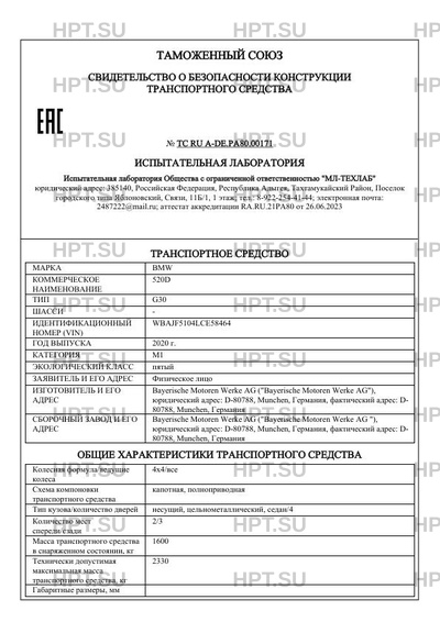 | Предприятие-изготовитель | Bayerische Motoren Werke AG ("Bayerische Motoren Werke AG"), юридический адрес: D-80788, Munchen, Германия, фактический адрес: D- 80788, Munchen, Германия |