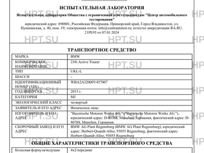 | Коммерческое наименование | 218i Active Tourer |