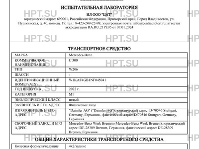 Предприятие-изготовитель "Daimler AG" ("Daimler AG"), юридический адрес: D-70546 Stuttgart, Germany, Германия., фактический адрес: D-70546 Stuttgart, Germany, Германия.