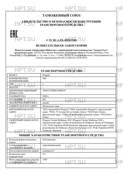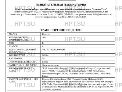 | Предприятие-изготовитель | "PSA Automobiles Peugeot" ("PSA Automobiles Peugeot"), юридический адрес: 75016, 75 Avenue De La Grande Armee, 75016 Paris, France, фактический адрес: 75016, 75 Avenue De La Grande Armee, 75016 Paris, France |