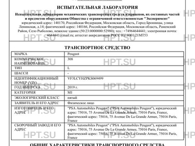 Предприятие-изготовитель "PSA Automobiles Peugeot" ("PSA Automobiles Peugeot"), юридический адрес: 75016, 75 Avenue De La Grande Armee, 75016 Paris, France, фактический адрес: 75016, 75 Avenue De La Grande Armee, 75016 Paris, France