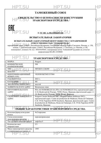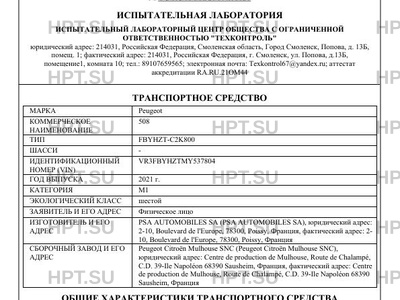 | Предприятие-изготовитель | PSA AUTOMOBILES SA (PSA AUTOMOBILES SA), юридический адрес: 2-10, Boulevard de l'Europe, 78300, Poissy, Франция, фактический адрес: 2- 10, Boulevard de l'Europe, 78300, Poissy, Франция |