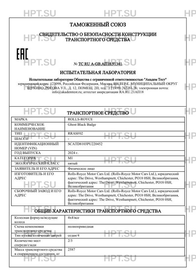 | Предприятие-изготовитель | Rolls-Royce Motor Cars Ltd. (Rolls-Royce Motor Cars Ltd.), юридический адрес: The Drive, Westhampnett, Chichester, PO18 0SH, Великобритания, фактический адрес: The Drive, Westhampnett, Chichester, PO18 0SH, Великобритания |