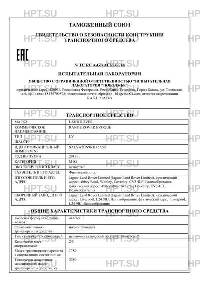 | Коммерческое наименование | RANGE ROVER EVOQUE |