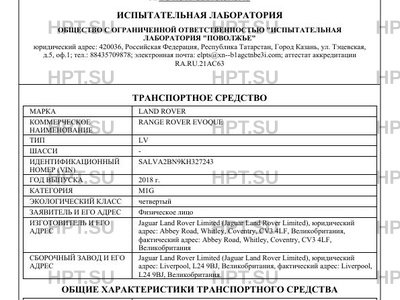 | Предприятие-изготовитель | Jaguar Land Rover Limited (Jaguar Land Rover Limited), юридический адрес: Abbey Road, Whitley, Coventry, CV3 4LF, Великобритания, фактический адрес: Abbey Road, Whitley, Coventry, CV3 4LF, Великобритания |