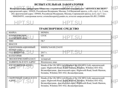 | Предприятие-изготовитель | Honda of the UK MFG Ltd |