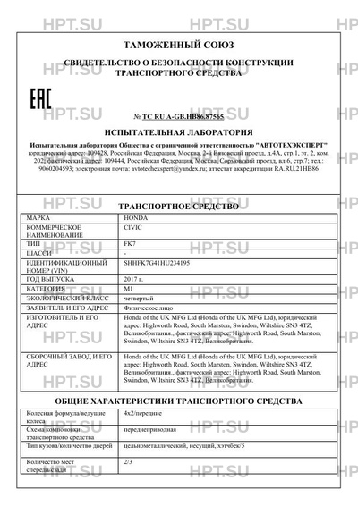 | Номер документа | ТС RU А-GB.НВ86.87565 |