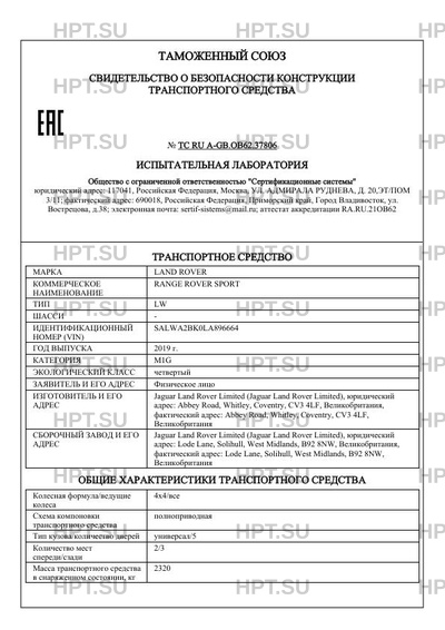 | Предприятие-изготовитель | Jaguar Land Rover Limited (Jaguar Land Rover Limited), юридический адрес: Abbey Road, Whitley, Coventry, CV3 4LF, Великобритания, фактический адрес: Abbey Road, Whitley, Coventry, CV3 4LF, Великобритания |