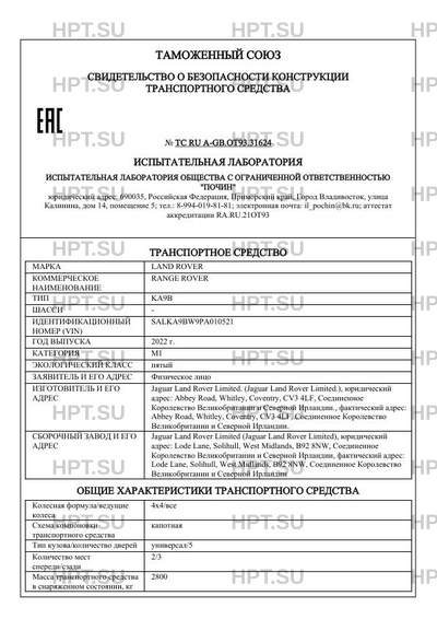 | Номер документа | ТС RU А-GB.ОТ93.31624 |