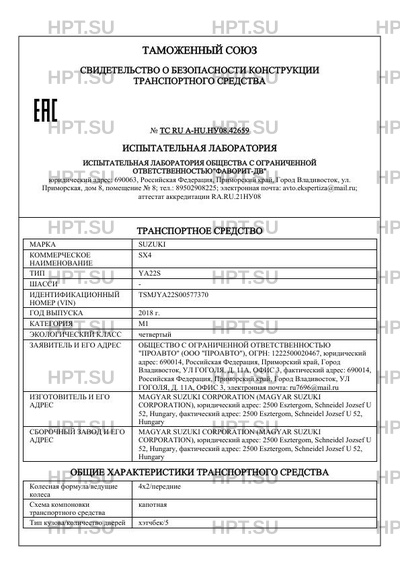 Предприятие-изготовитель MAGYAR SUZUKI CORPORATION (MAGYAR SUZUKI CORPORATION), юридический адрес: 2500 Esztergom, Schneidel Jozsef U 52, Hungary, фактический адрес: 2500 Esztergom, Schneidel Jozsef U 52, Hungary