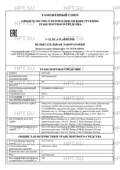 | ДВС | DUCATI, ZDM899W, четырехтактный, с искровым зажигание |