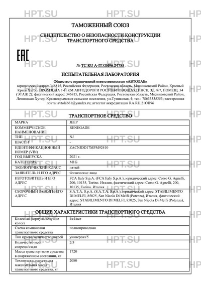 | Марка ТС | JEEP |