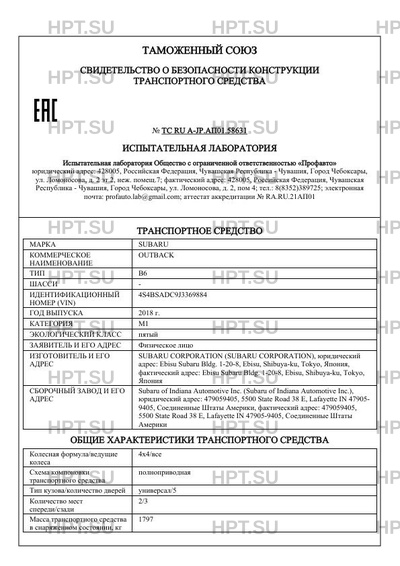 | Марка ТС | SUBARU |
