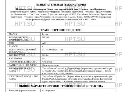 Предприятие-изготовитель Toyota Motor Corporation (Toyota Motor Corporation), юридический адрес: 1, Toyota-Cho, Toyota City, Aichi, Япония, фактический адрес: 1, Toyota- Cho, Toyota City, Aichi, Япония