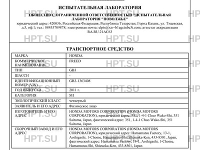 Предприятие-изготовитель HONDA MOTORS CORPORATION (HONDA MOTORS CORPORATION), юридический адрес: 351, 1-4-1 Chuo Wako-Shi, 351 Saitama, Japan, фактический адрес: 351, 1-4-1 Chuo Wako-Shi, 351 Saitama, Japan