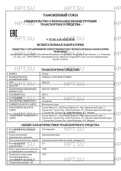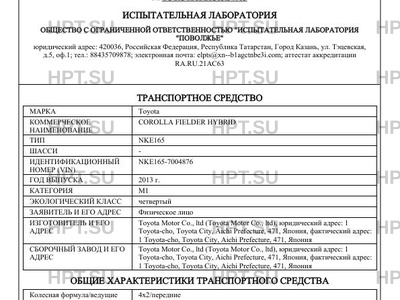 Предприятие-изготовитель Toyota Motor Co., ltd (Toyota Motor Co., ltd), юридический адрес: 1 Toyota-cho, Toyota City, Aichi Prefecture, 471, Япония, фактический адрес: 1 Toyota-cho, Toyota City, Aichi Prefecture, 471, Япония