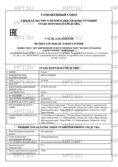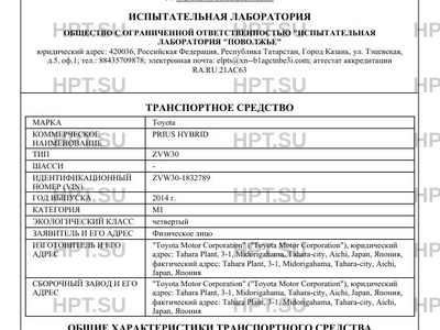 | Коммерческое наименование | PRIUS HYBRID |