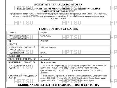 | Предприятие-изготовитель | "Toyota Motor Corporation" ("Toyota Motor Corporation"), юридический адрес: 471-8571, 1Toyota-cho, 471-8571 Toyota-Aichi, Япония., фактический адрес: 471-8571, 1Toyota-cho, 471-8571 Toyota-Aichi, Япония. |