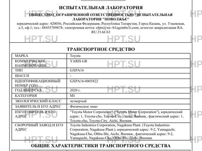 | Предприятие-изготовитель | "Toyota Motor Corporation" ("Toyota Motor Corporation"), юридический адрес: 1, Toyota-cho, Toyota-City, Aichi, Япония., фактический адрес: 1, Toyota-cho, Toyota-City, Aichi, Япония. |