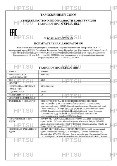 | Предприятие-изготовитель | HONDA MOTOR Co., Ltd. (HONDA MOTOR Co., Ltd), юридический адрес: No.1-1, 2 Chome, Minami-Aoyama, Minato-ku, Tokyo, 107-8556, Japan., фактический адрес: No.1-1, 2 Chome, Minami-Aoyama, Minato-ku, Tokyo, 107-8556, Japan. |