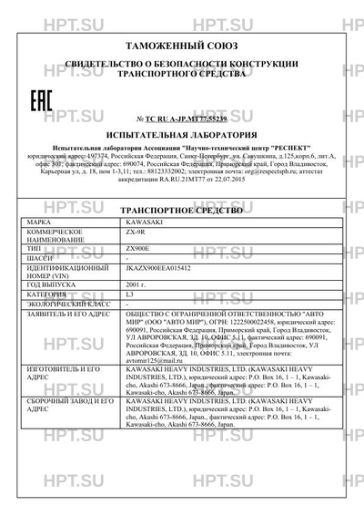 | Марка ТС | KAWASAKI |
