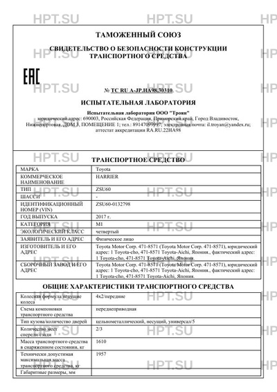 | Коммерческое наименование | HARRIER |