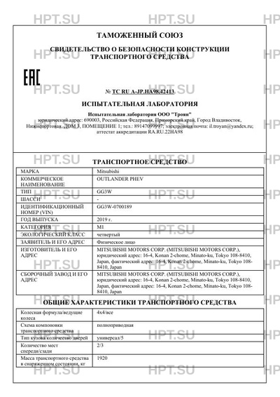 Предприятие-изготовитель MITSUBISHI MOTORS CORP. (MITSUBISHI MOTORS CORP.), юридический адрес: 16-4, Konan 2-chome, Minato-ku, Tokyo 108-8410, Japan, фактический адрес: 16-4, Konan 2-chome, Minato-ku, Tokyo 108- 8410, Japan