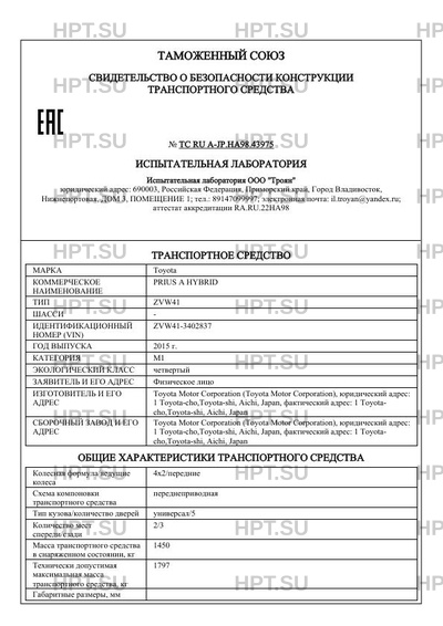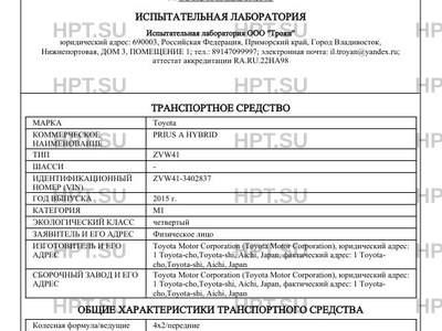 | Коммерческое наименование | PRIUS A HYBRID |