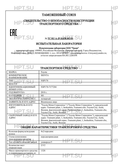 | Предприятие-изготовитель | "Toyota Motor Corporation." ("Toyota Motor Corporation."), юридический адрес: Tsutsumi plant, 1, Inokashira, Tsutsumi-cho, Toyota-City, Aichi, Япония, фактический адрес: Tsutsumi plant, 1, Inokashira, Tsutsumi-cho, Toyota-City, Aichi, Япония |