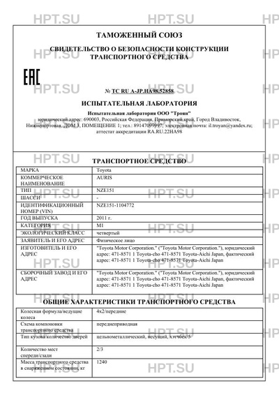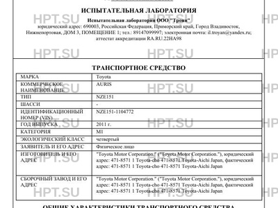 | Предприятие-изготовитель | "Toyota Motor Corporation." ("Toyota Motor Corporation."), юридический адрес: 471-8571 1 Toyota-cho 471-8571 Toyota-Aichi Japan, фактический адрес: 471-8571 1 Toyota-cho 471-8571 Toyota-Aichi Japan |