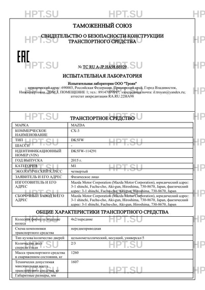 Предприятие-изготовитель Mazda Motor Corporation (Mazda Motor Corporation), юридический адрес: 3-1 shinchi, Fuchu-cho, Aki-gun, Hiroshima, 730-8670, Japan, фактический адрес: 3-1 shinchi, Fuchu-cho, Aki-gun, Hiroshima, 730-8670, Japan