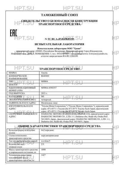 | Коммерческое наименование | ROOMY |
