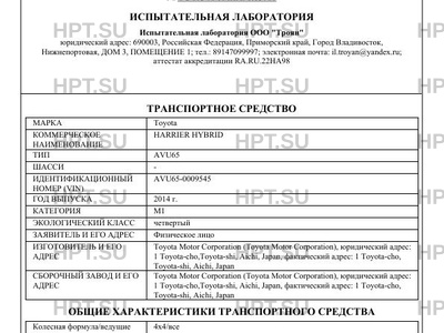 | Предприятие-изготовитель | Toyota Motor Corporation (Toyota Motor Corporation), юридический адрес: 1 Toyota-cho,Toyota-shi, Aichi, Japan, фактический адрес: 1 Toyota-cho, Toyota-shi, Aichi, Japan |