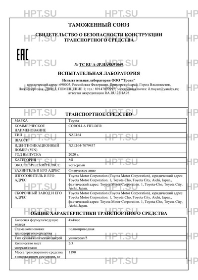 Предприятие-изготовитель Toyota Motor Corporation (Toyota Motor Corporation), юридический адрес: Toyota Motor Corporation. 1, Toyota-Cho, Toyota City, Aichi, Japan., фактический адрес: Toyota Motor Corporation. 1, Toyota-Cho, Toyota City, Aichi, Japan.