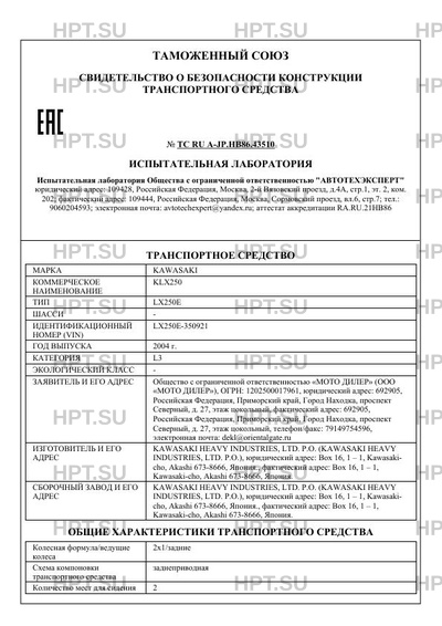 | Марка ТС | KAWASAKI |