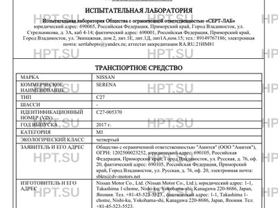 Предприятие-изготовитель Nissan Motor Co., Ltd. (Nissan Motor Co., Ltd.), юридический адрес: 1-1, Takashima 1-chome, Nishi-ku, Yokohama-shi, Kanagawa 220-8686, Japan, Япония. Тел. +81-45-523-5523., фактический адрес: 1-1, Takashima 1- chome, Nishi-ku, Yokohama-shi, Kanagawa 220-8686, Japan, Япония. Тел. +81-45-523-5523.