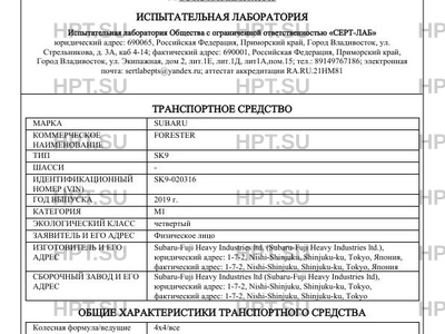 | Предприятие-изготовитель | Subaru-Fuji Heavy Industries ltd. (Subaru-Fuji Heavy Industries ltd.), юридический адрес: 1-7-2, Nishi-Shinjuku, Shinjuku-ku, Tokyo, Япония, фактический адрес: 1-7-2, Nishi-Shinjuku, Shinjuku-ku, Tokyo, Япония |