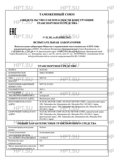 | Предприятие-изготовитель | SUZUKI MOTOR CORP. (SUZUKI MOTOR CORP.), юридический адрес: 300, Takatsuka-cho, Hamamatsu-shi, Shizuoka Pref. 432-8611, Japan, фактический адрес: 300, Takatsuka-cho, Hamamatsu-shi, Shizuoka Pref. 432-8611, Japan |