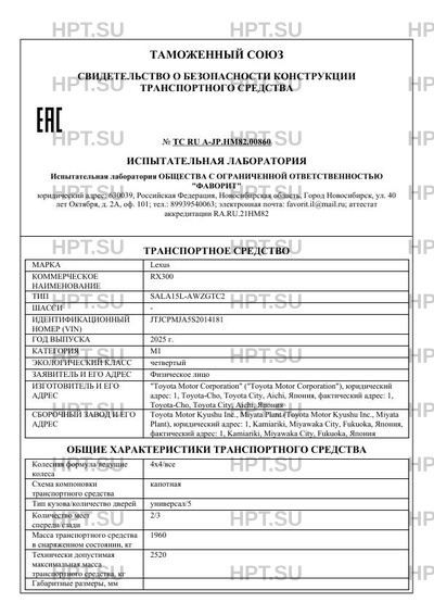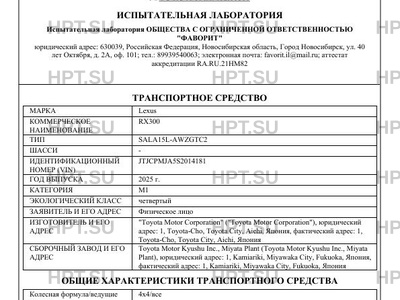 Предприятие-изготовитель "Toyota Motor Corporation" ("Toyota Motor Corporation"), юридический адрес: 1, Toyota-Cho, Toyota City, Aichi, Япония, фактический адрес: 1, Toyota-Cho, Toyota City, Aichi, Япония