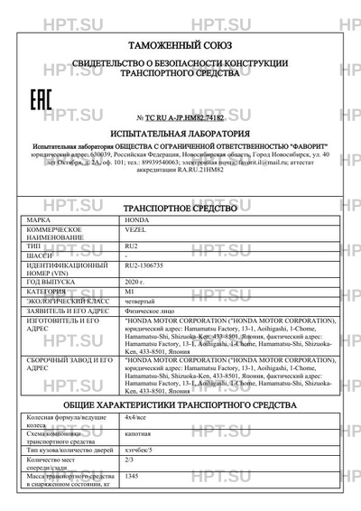 Полное СБКТС ТС RU A-JP.НМ82.74182