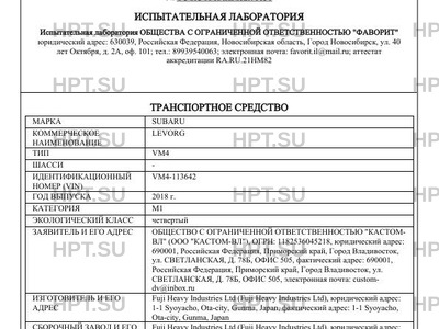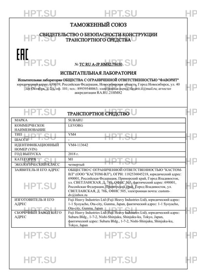 | Предприятие-изготовитель | Fuji Heavy Industries Ltd (Fuji Heavy Industries Ltd), юридический адрес: 1-1 Syoyacho, Ota-city, Gunma, Japan, фактический адрес: 1-1 Syoyacho, Ota-city, Gunma, Japan |