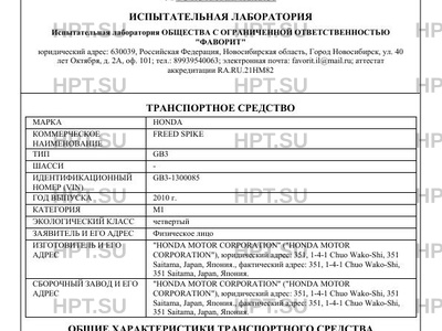 Предприятие-изготовитель "HONDA MOTOR CORPORATION" ("HONDA MOTOR CORPORATION"), юридический адрес: 351, 1-4-1 Chuo Wako-Shi, 351 Saitama, Japan, Япония., фактический адрес: 351, 1-4-1 Chuo Wako-Shi, 351 Saitama, Japan, Япония.