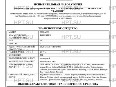 | Предприятие-изготовитель | SUBARU CORPORATION (SUBARU CORPORATION), юридический адрес: Ebisu Subaru Building, 1-20-8, Ebisu, Shibuya-ku, Tokyo, Japan, Япония, фактический адрес: Ebisu Subaru Building, 1-20-8, Ebisu, Shibuya- ku, Tokyo, Japan, Япония |