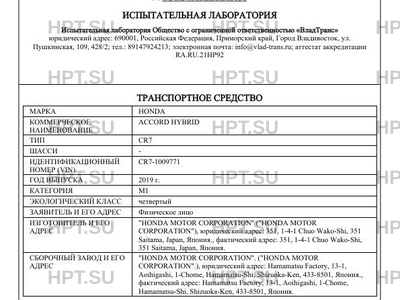 | Предприятие-изготовитель | "HONDA MOTOR CORPORATION" |