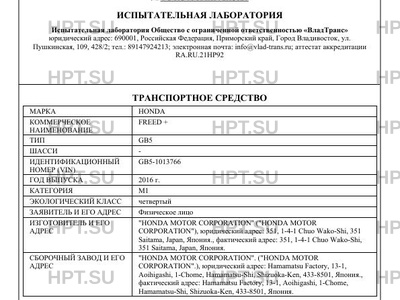 | Предприятие-изготовитель | "HONDA MOTOR CORPORATION" ("HONDA MOTOR CORPORATION"), юридический адрес: 351, 1-4-1 Chuo Wako-Shi, 351 Saitama, Japan, Япония., фактический адрес: 351, 1-4-1 Chuo Wako-Shi, 351 Saitama, Japan, Япония. |