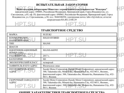 | Предприятие-изготовитель | Suzuki Motor Corporation (Suzuki Motor Corporation), юридический адрес: 300, Takatsuka-cho, Minami-ku, Hamamatsu City, 432-8611, Япония., фактический адрес: 300, Takatsuka-cho, Minami-ku, Hamamatsu City, 432- 8611, Япония. |