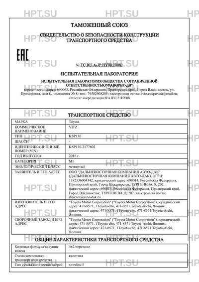 | Предприятие-изготовитель | "Toyota Motor Corporation" ("Toyota Motor Corporation"), юридический адрес: 471-8571, 1Toyota-cho, 471-8571 Toyota-Aichi, Япония., фактический адрес: 471-8571, 1Toyota-cho, 471-8571 Toyota-Aichi, Япония. |