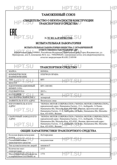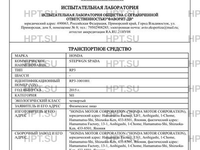 | Предприятие-изготовитель | "HONDA MOTOR CORPORATION ("HONDA MOTOR CORPORATION), юридический адрес: Hamamatsu Factory, 13-1, Aoihigashi, 1-Chome, Hamamatsu-Shi, Shizuoka-Ken, 433-8501, Япония, фактический адрес: Hamamatsu Factory, 13-1, Aoihigashi, 1-Chome, Hamamatsu-Shi, Shizuoka- Ken, 433-8501, Япония |