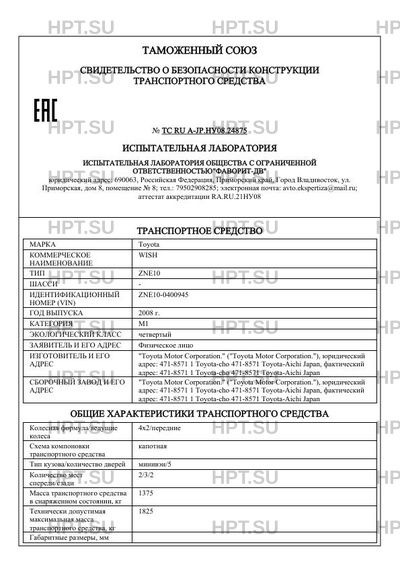 | Предприятие-изготовитель | "Toyota Motor Corporation." ("Toyota Motor Corporation."), юридический адрес: 471-8571 1 Toyota-cho 471-8571 Toyota-Aichi Japan, фактический адрес: 471-8571 1 Toyota-cho 471-8571 Toyota-Aichi Japan |
